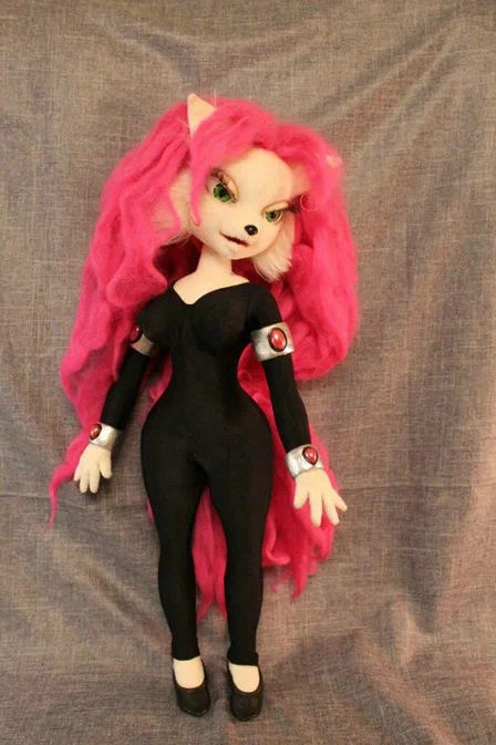 Meet Jenny — a mysterious and graceful feline from the distant world of Aldebaran, inspired by the beloved character from the Bucky O’Hare universe. With her flowing pink hair and piercing green eyes, this unique handmade doll looks like she’s just stepped out of another galaxy. Optional outfits are available to change her look. This doll isn’t just for fans of retro sci-fi — she’s for anyone who appreciates creativity, style, and character in every stitch. A perfect centerpiece for a collector's shelf or a unique interior accents.🔥😻🥰