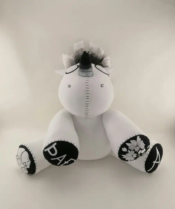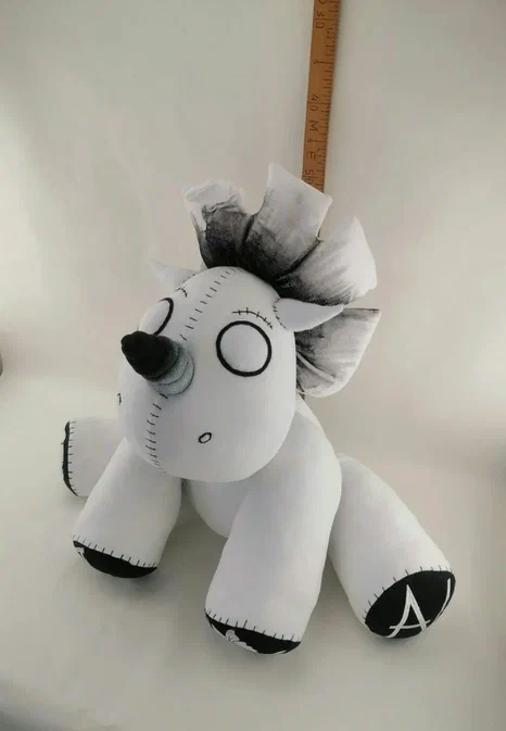 Meet the Voodoo Unicorn — a handmade textile toy with a strong artistic identity. Combining mythical symbolism with handcrafted detail, this unicorn makes a perfect gift for collectors, fans of alternative art, and lovers of unique handmade creations. Ideal as a statement décor piece or a meaningful custom-made gift.
