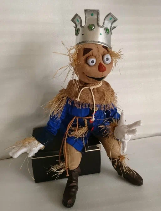 Meet the Straw King from Oz — a handmade scarecrow doll that brings the enchantment of the Land of Oz to life. Perfect for collectors, fans of classic fantasy stories, and lovers of unique handmade toys. Ideal as a collectible, whimsical home décor piece, or a personalized gift for any Oz fan.